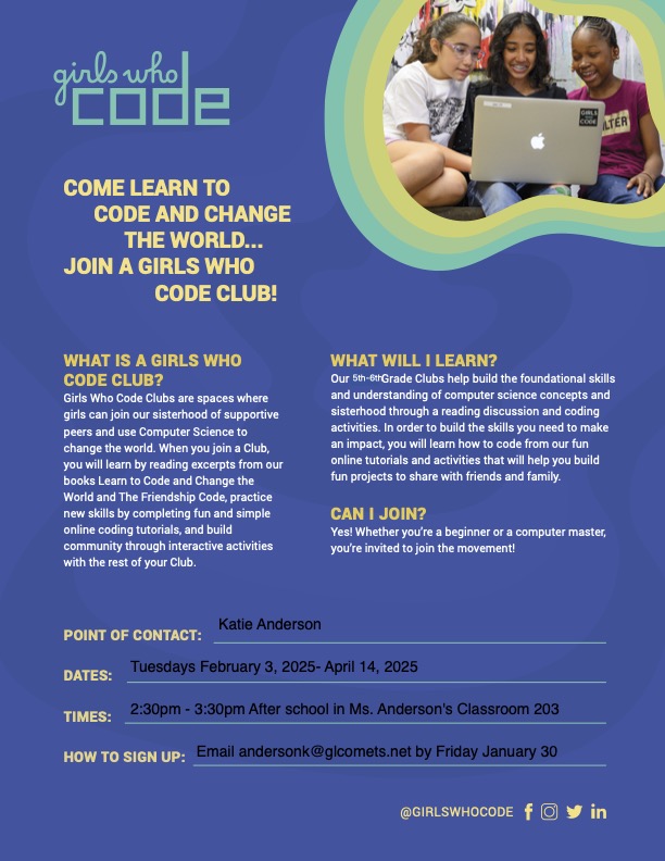 Contact Katie Anderson at andersonk@glcomets.net by Friday 1/30/26