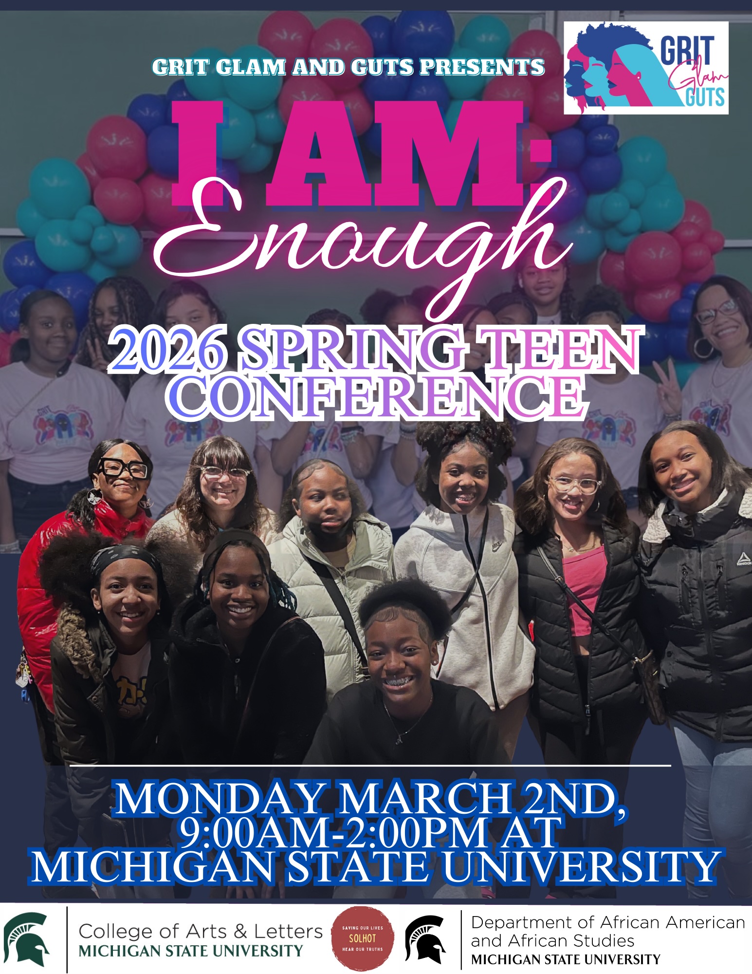 Grand Ledge student have been invited to register for the 2026 Grit, Glam, and Guts I AM Enough Spring Teen Conference! This years conference will continue to build on themes of confidence, leadership, emotional wellness, and community - offering a full day of engaging workshops and empowering experiences for middle and high school girls.